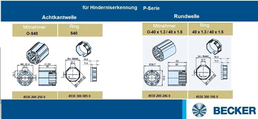 Becker - Rollladenantriebe mit Funk P5-C01 bis P9-C01, Serie P, Typ C01