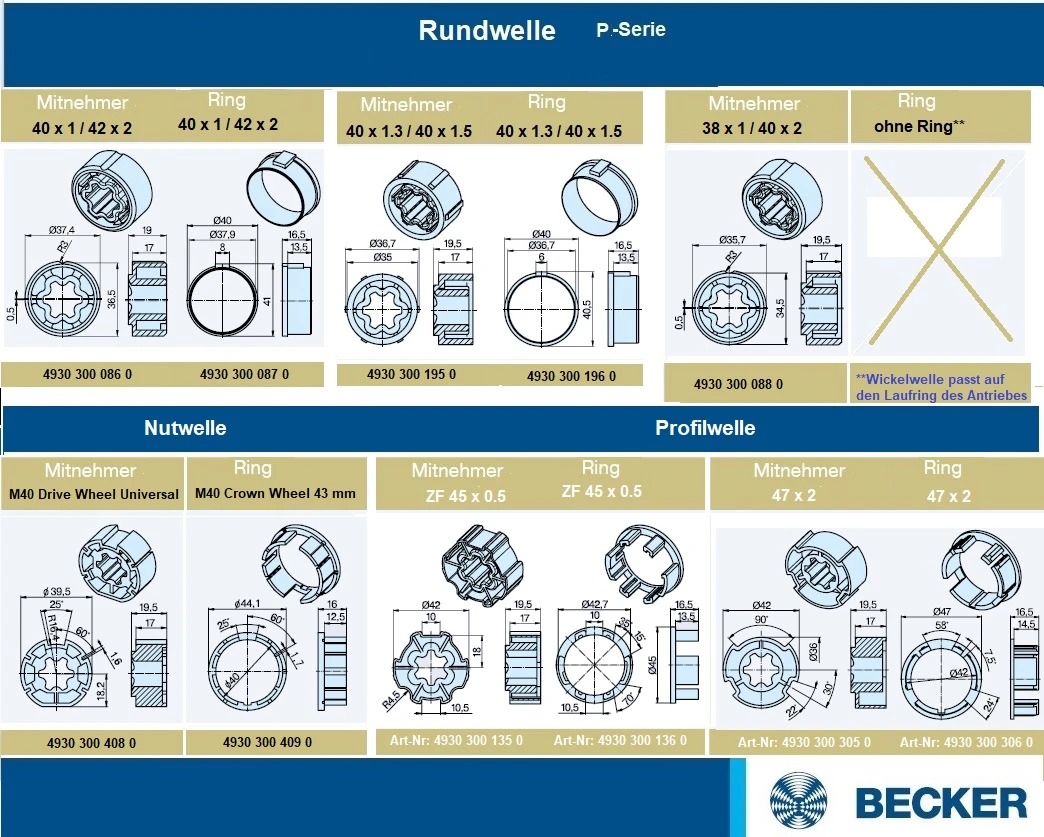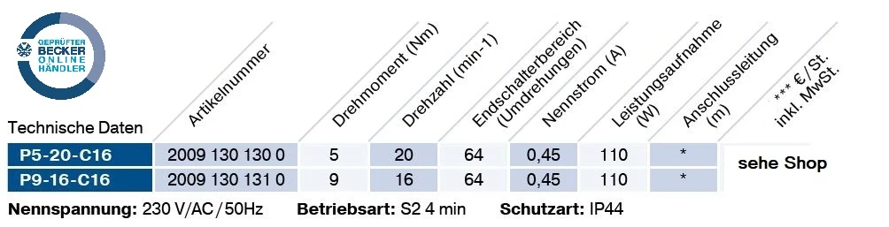 Becker - Sonnenschutzantriebe für Verrigelungssysteme mit integriertem Funkempfänger P5-C16 bis P9-C16 , Serie P , Typ C16