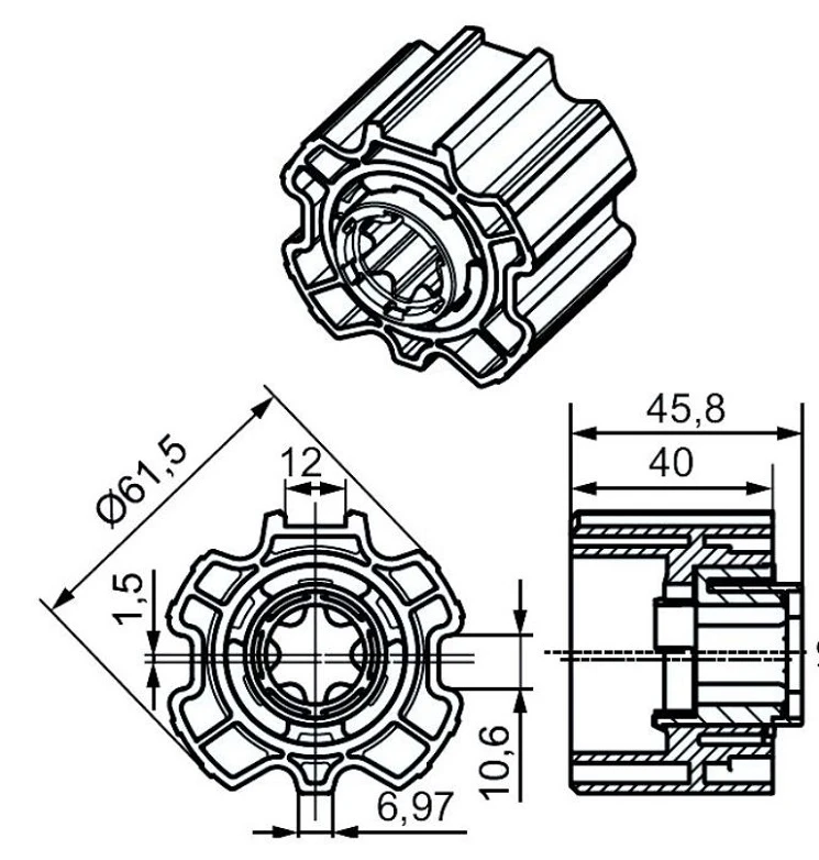 Adapterset für Profilwelle O-ZF64,für Becker Rohrmotoren  Baureihe P und R Serie mit Hinderniserkennung