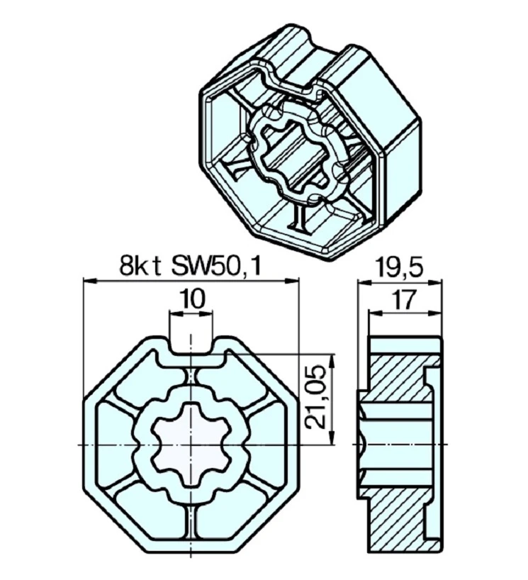 Adapterset für Achtkatwelle SW50 ,für Rohrmotoren Becker Baureihe P und R Serie.