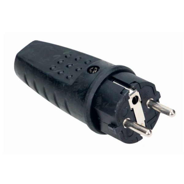 WTS -Schuko-Vollgummi-Stecker IP 44 mit zentraler Kabeleinführung und Knickschutz, Farbe schwarz