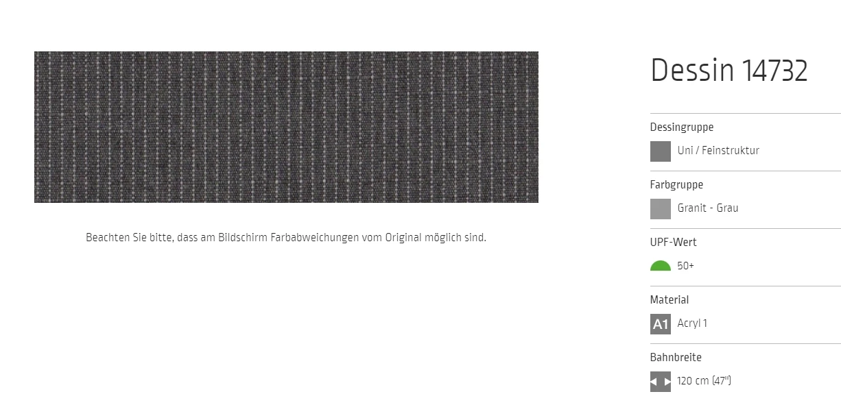 Markisentuch Uni - Feinstruktur, Granit - Grau UPF 50+, Acryl 1