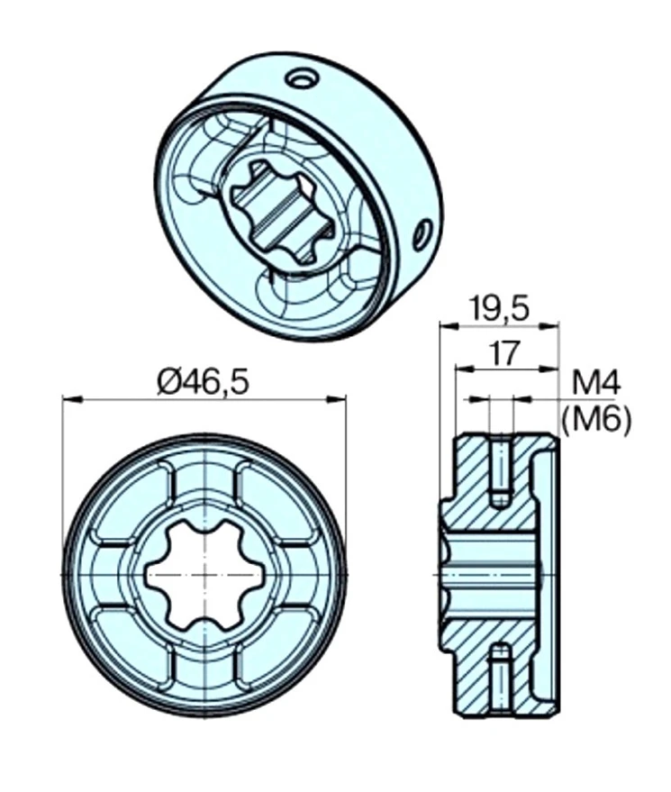Adapterset Bestehend aus Mitnehmer aus Kunststoff  Für Becker Rohrantriebe der Baureihe P5 - P13* und  R7 - R50*.
