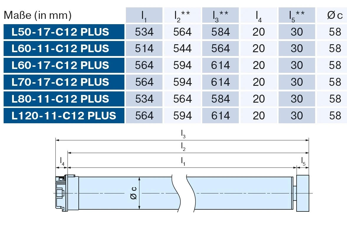 ** Mitnehmerbreite von DW78N (4931 300 365 0) , bei Wahl eines anderen Mitnehmers ändern sich die Maße l2, l3 und l5