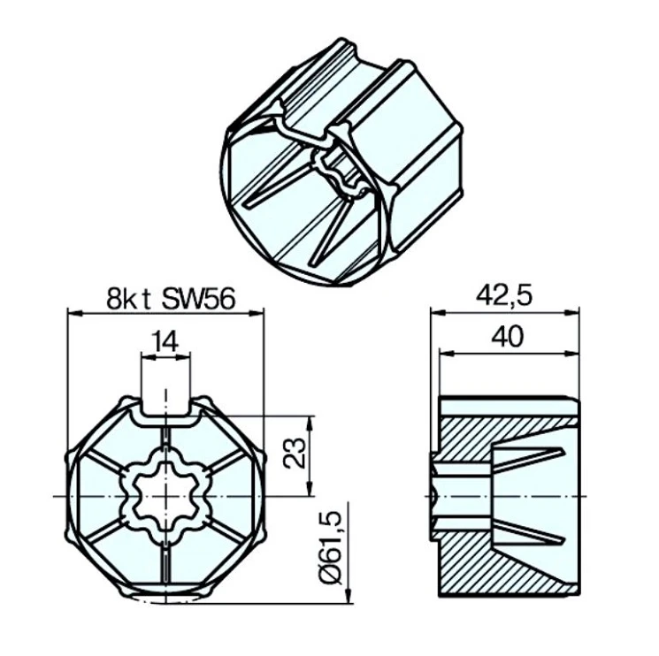 Adapterset für Achtkatwelle S60L ,für Rohrmotoren Becker Baureihe R Serie.