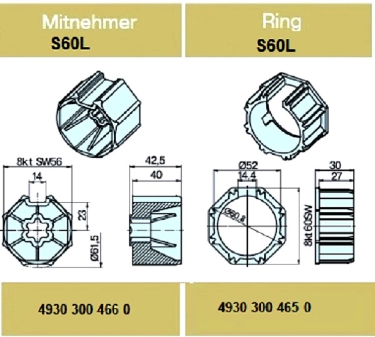 Mitnehmer S60L Verlängert  Art-Nr. 4930 300 466 0 - GTIN-Nr. 4251852909430