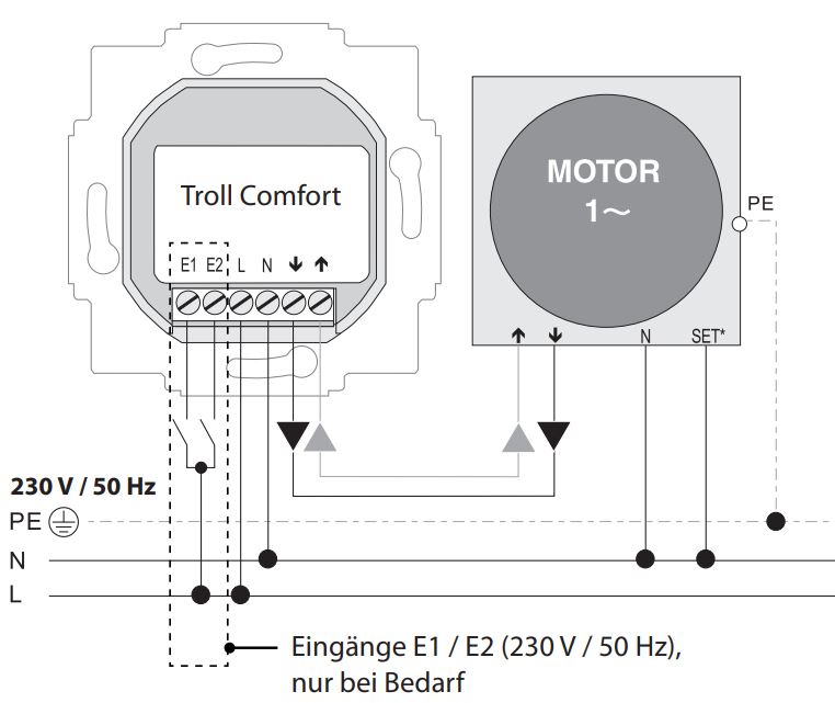 Eingangsspannung: 230 V / 50 Hz (Ri = 200 kW)