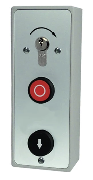 WTS - Standard - Schlüsseltaster mit 1 Tast-Kontakt mit Schlüssel : AUF Drucktasten: STOP - AB , AP ,Wassergeschützt - Schutzart IP 54