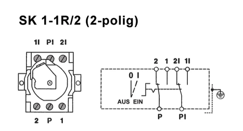 SK 1-1R/2 UP Schlüssel-Schalter mit 1 Rast-Kontakt, 2-polig AUS/EIN
