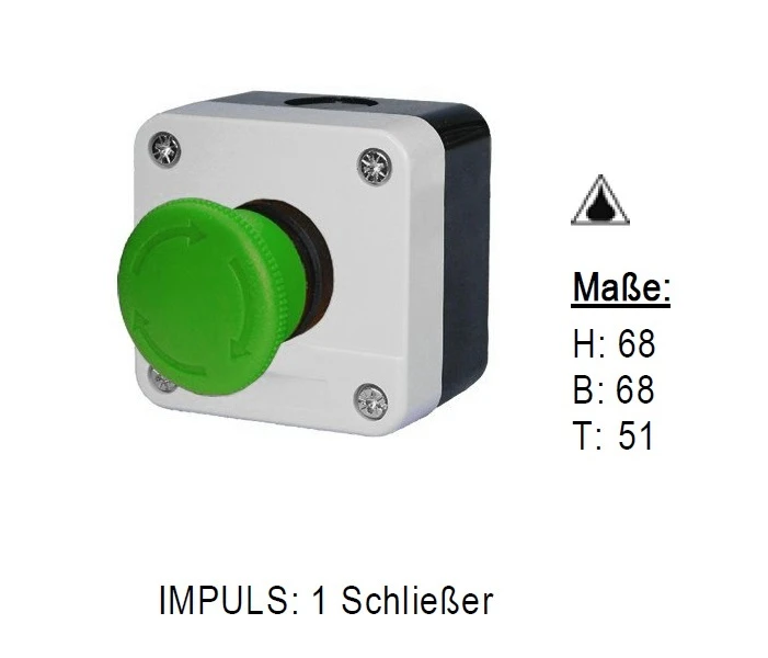 WTS - Einfach-Pilz-Drucktaster (grüner Pilz, tastend) IMPULS 1 Schließer Wassergeschützt - Schutzart IP 65