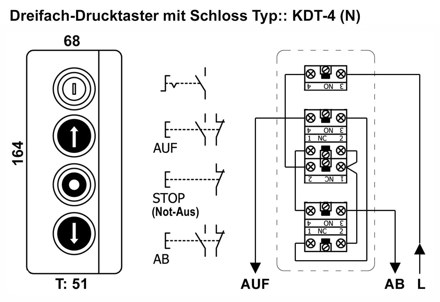 KDT-4 AP Dreifach-Drucktaster mit Schloss (abschließbar) AUF / STOP / AB