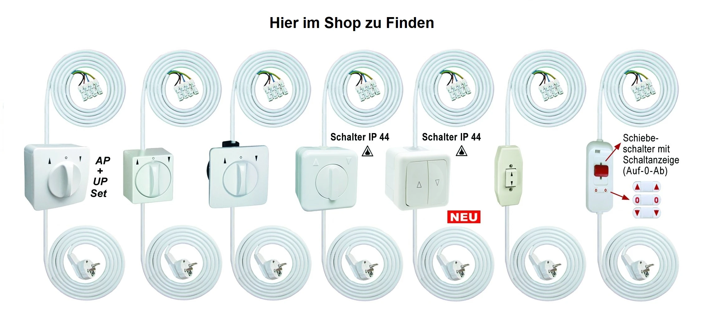 Rohrmotoren mit mechanischer Endabschaltung. Anschlussfertig konfektioniert mit 2 Meter Netzkabel