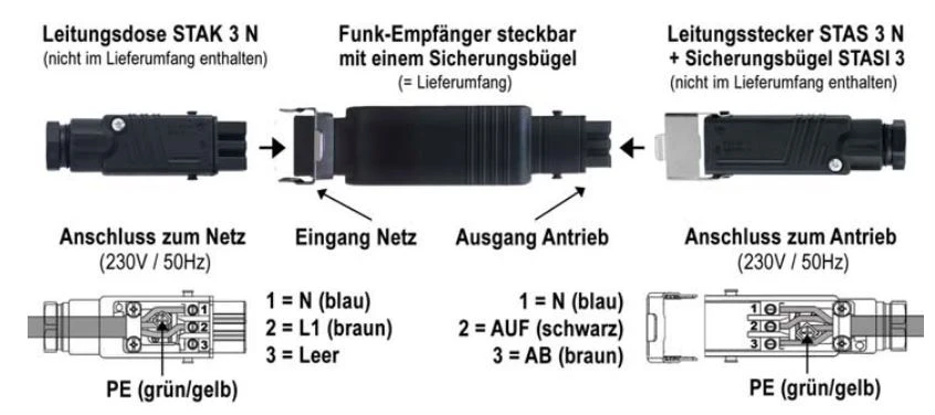 Hirschmannstecker STAS 3, 4-Poliger Leitungsstecker. Schutzklasse IP54 (für den ungeschützten Außenbereich).