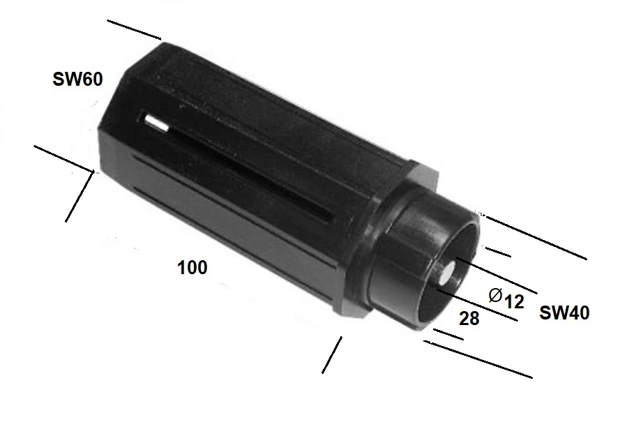Kunststoffwalzenkapsel SW 60 8-Kant lange Ausführung mit innenliegendem Stift 12 mm runde Steckaufnahme SW40