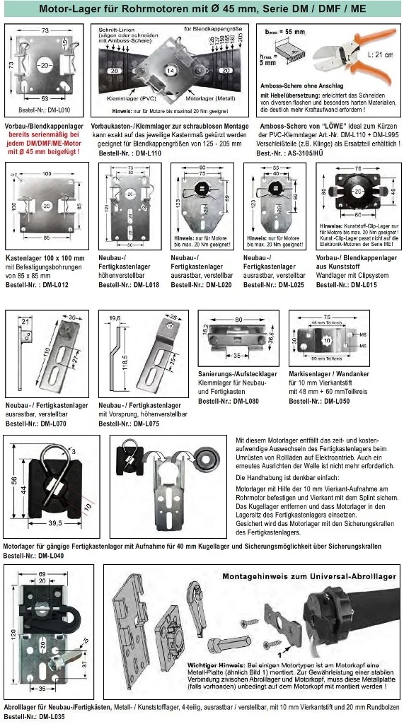 WTS - Motor-Lager DM-L015 für Rohrmotoren mit Ø 45 mm, Serie DM / DMF / ME
