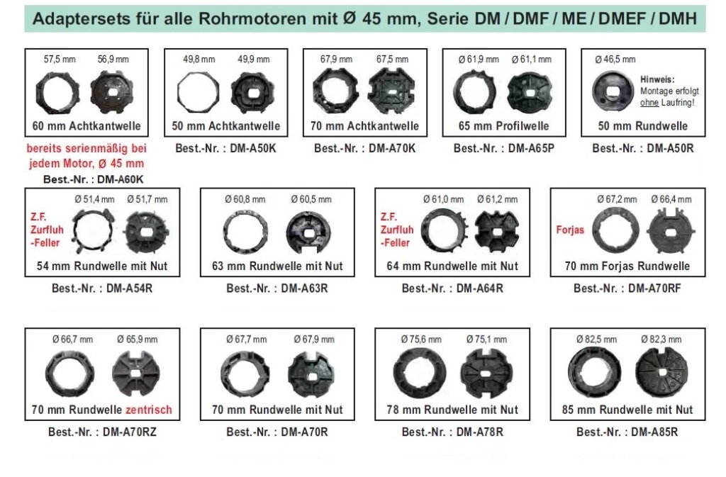 WTS - Adapterset DM-A70RF :70 mm Forjas Rundwelle , Forjas für alle Rohrmotoren Ø 45 mm Serie