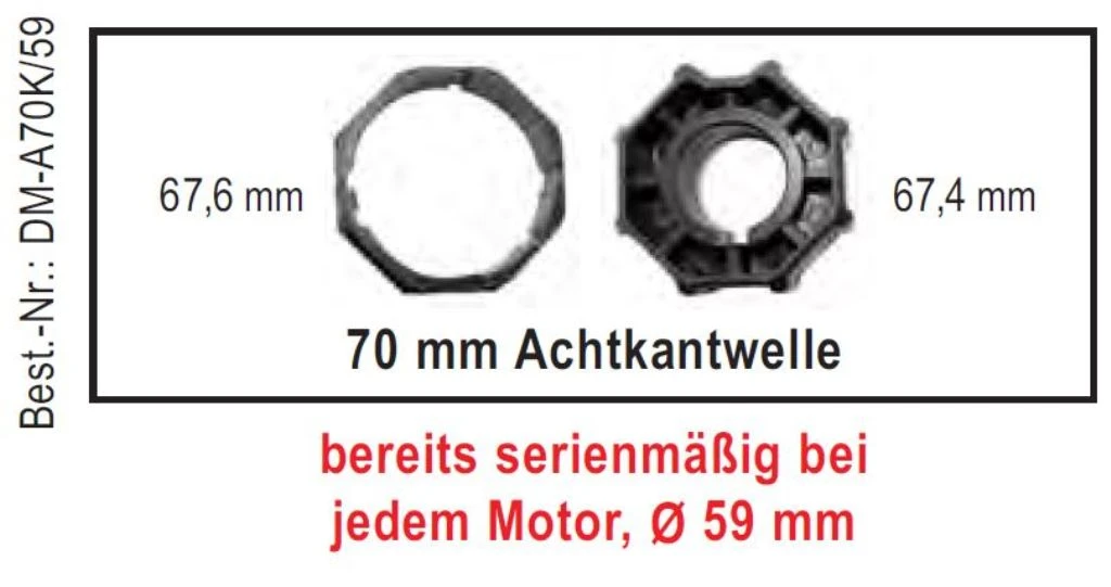 WTS - Adapterset DM-A70K-59 : 70 mm Achtkantwelle nur für Maxi - Rohrmotoren Ø 59 mm, Serie DM-59 + DMH-59