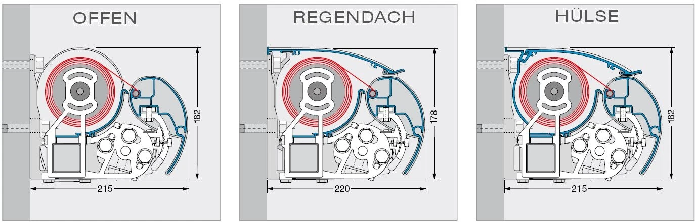 Sie brauchen nur noch auszuwählen: Typ Offen, Regendach oder Hülse.