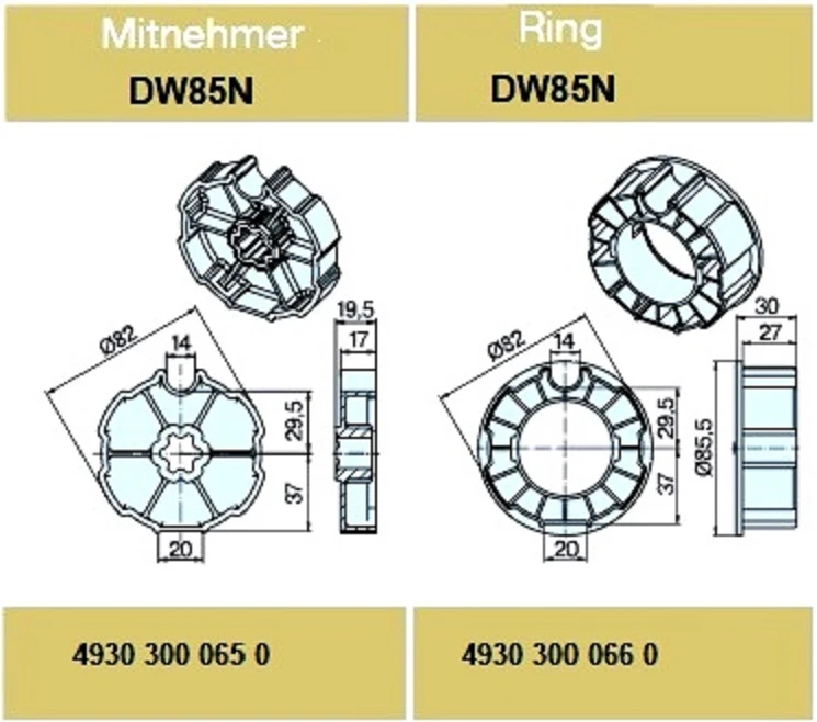 Adapterset für Nutwelle DW85N bis 30Nm für Rohrmotoren Becker Baureihe R Serie