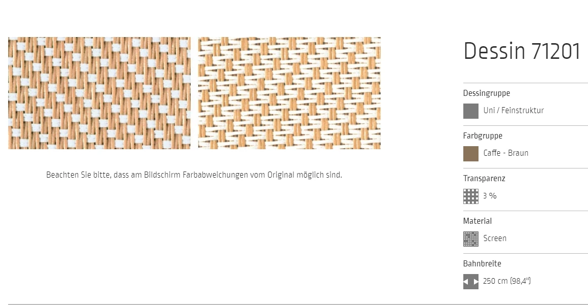 Markisentuch Screen-Gewebe, Caffe - Braun Transparenz 3 Prozent, Stoff-Nr. 71201