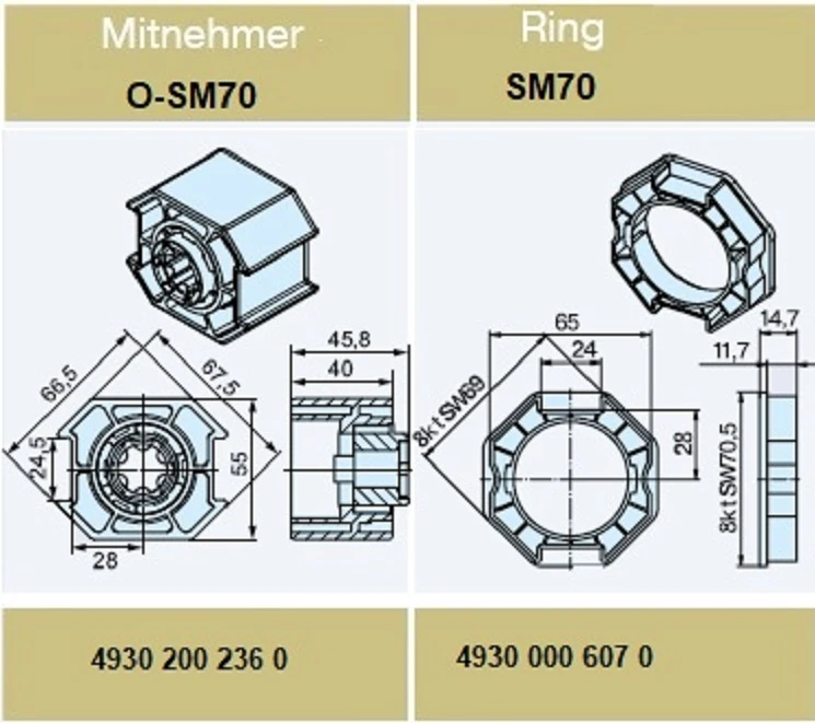 Adapterset für Achtkatwelle O-SM70 für Rohrmotoren Becker Baureihe P und R Serie mit Hinderniserkennung