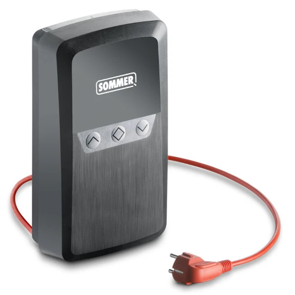 Rolltorsteuerung Sommer RDC Vision+ mit SOMloq2 Funkempfänger Rolling-Code FM 868,95 MHz, 3-fach Taster, LED-Beleuchtung und Netz-Stecker, >> inklusive 1 Stück Handsender 2-Kanal „Pearl Twin“ <<, für 230V AC Rohrantriebe bis 1000W, 40 Speicherplätze, Schutzart IP 21