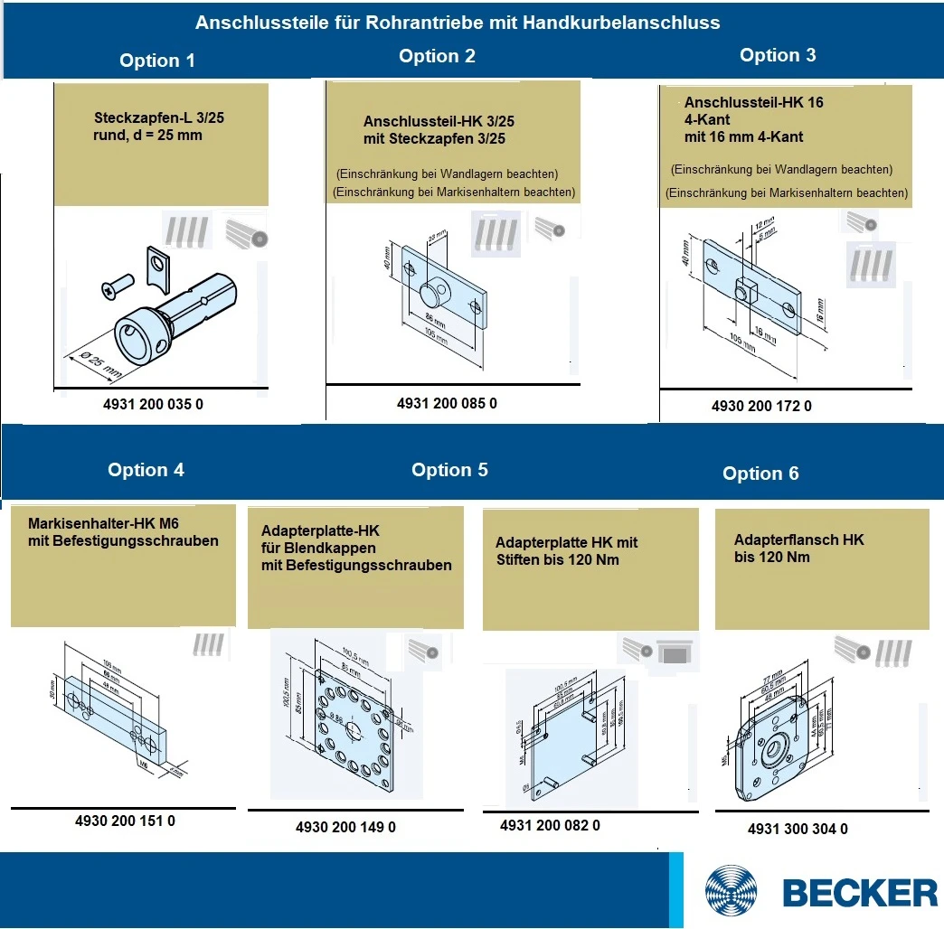 Becker - Rolltorantrieb R12-17-E25 12Nm mit elektronischer Endabschaltung mit Handkurbel- Anschluss