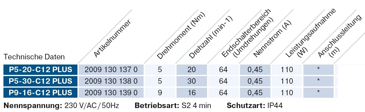 *** Alle Preise inkl. 2 m Anschlussleitung und Wellen-Adapter (Mitnehmer und Ring)