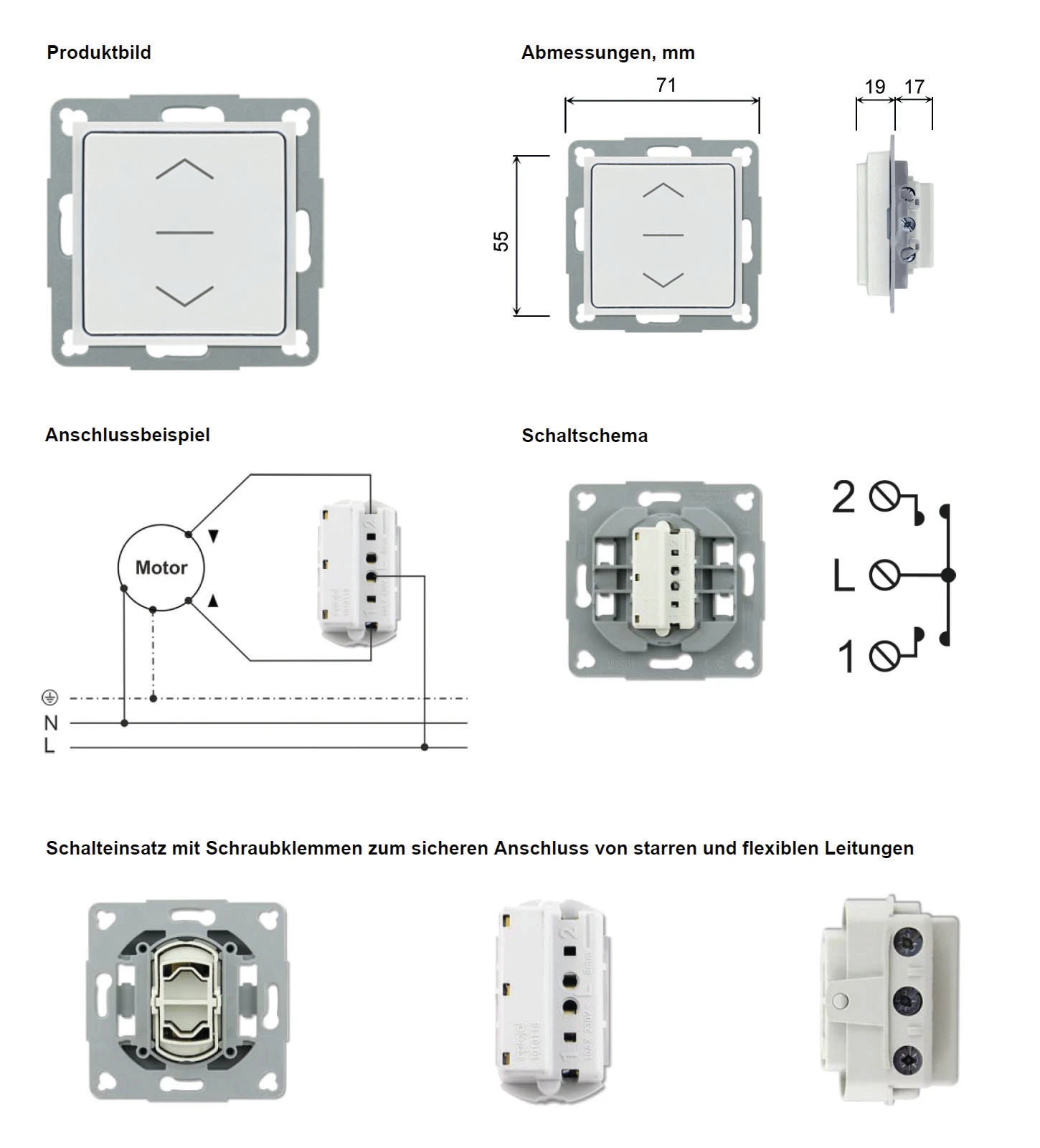 • Kompatibilität mit vielen Hersteller Schalterprogrammen (Wippe 55×55 mm)