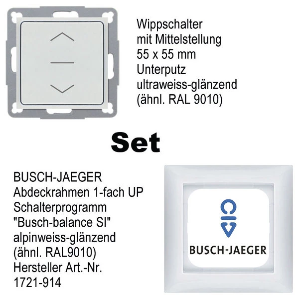 • Wippschalter mit Busch-Jäger „Busch-balance SI“ 1-fach Abdeck-/Kombirahmen