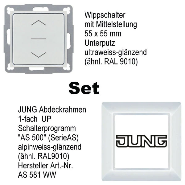 • Wippschalter mit Jung „AS 500“ 1-fach Abdeck-/Kombirahmen