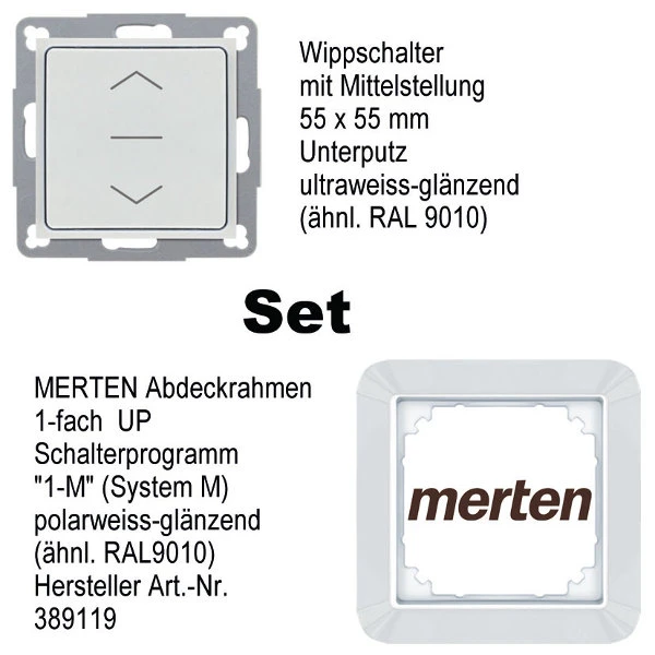 • Wippschalter mit Merten „1-M“ (System M) 1-fach Abdeck-/Kombirahmen