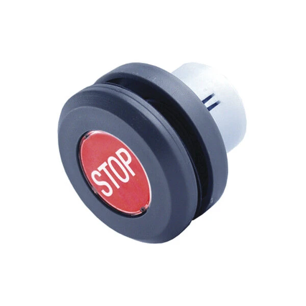 Drucktaster rot, mit Einlegeschild STOP, tastend, Einbaumaß 30,5 mm, für GEBA Schlüsselschalter/-taster der Baureihen S-APZ 2-2T und S-EPZ 2-2T mit Einbauöffnung 30,5 mm
