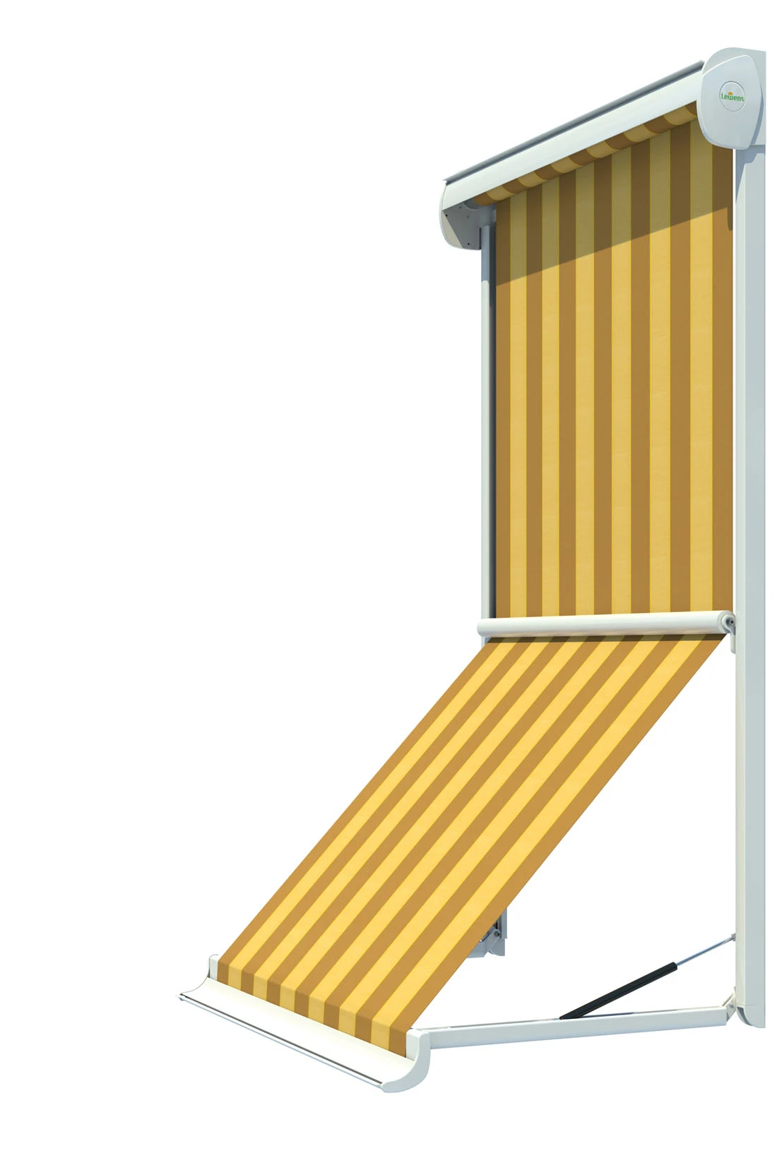 Die Markisolette MICRO 300 vereint die Vorzüge von Fallarm- und senkrechtmarkise: Während der obere Teil immer senkrecht bleibt, wird der untere Teil beim Ausfahren ausgestellt. Das sorgt für angenehme Beschattung der Innenräume bei fast ungehinderter Sicht nach draußen. Auch für Blumenkästen bleibt noch Platz und die Blumen bekommen Schatten.